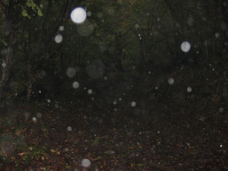 Nos dirigimos hacia Castildelgado por una estrecha carretera, continua lloviendo, pero ya vemos las luces a lo lejos. Cuando llegamos deja de llover, el trafico en la nacional 120 es escaso, hay una cafetería sin clientes abierta, pero el pueblo duerme. A lo lejos el ladrido de un perro y sin tiempo para más el pueblo se ha terminado. Seguimos por carretera y como los margenes están bien delimitados apagamos los frontales, con lo que nos quedamos en la oscuridad mas absoluta.